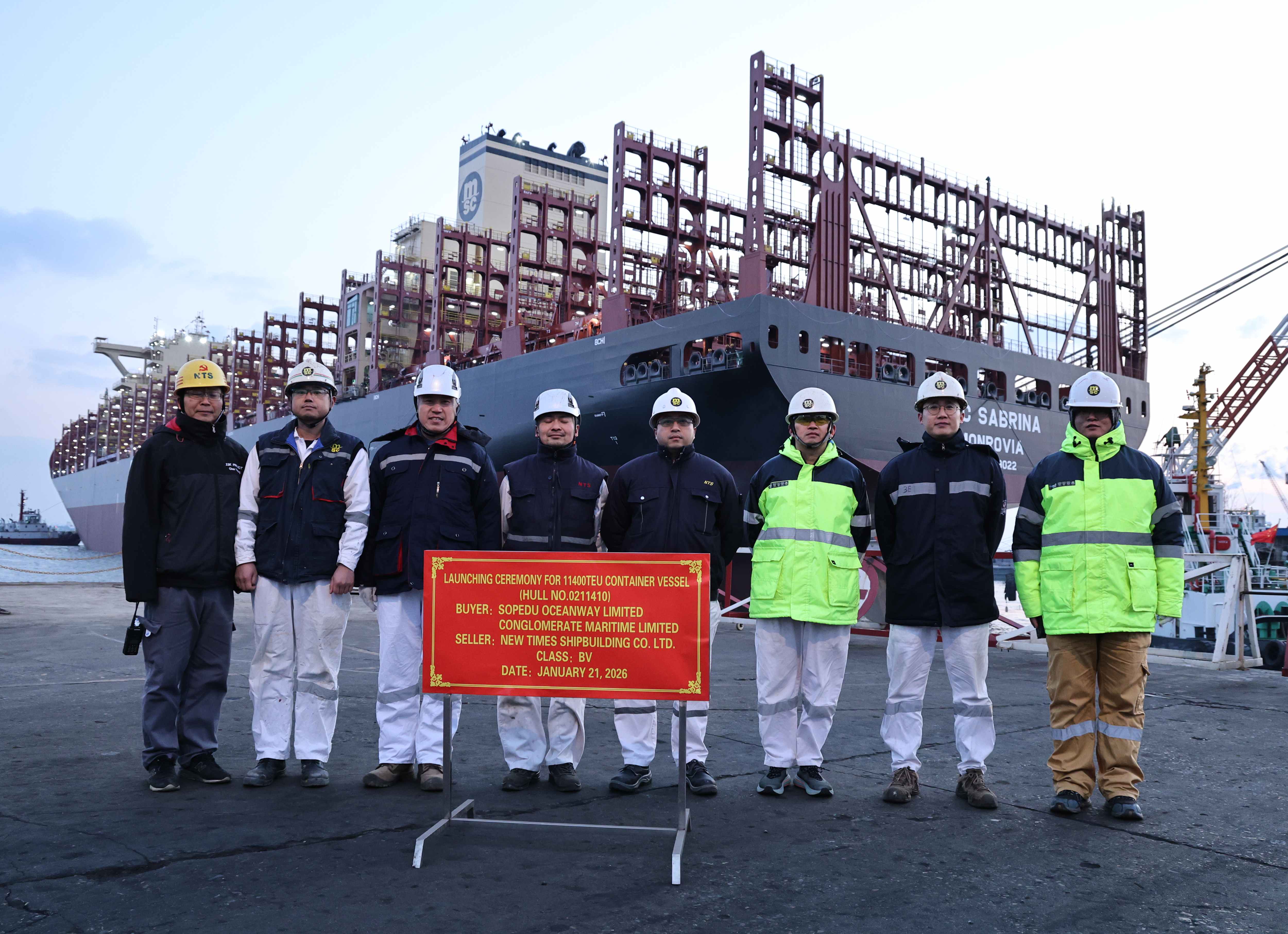 On January 21, 2026, the launching ceremony of 10# 11,400 TEU Container Vessel bearing builder's hull number 0211410  was carried out successfully by New Times Shipbuilding Co., Ltd. The representatives from MSC site office, BV classification society and shipyard were present and jointly witnessed the events.