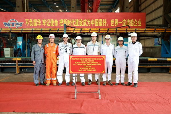 On September 1, 2025, the steel cutting of one 112,500 DWT LNG Dual Fuel Product/Crude Oil Tanker bearing builder's hull no. 0311553 was carried out successfully by New Times Shipbuilding Co., Ltd.. The representatives from shipyard, Captial Site Team and LR classification society attended and witnessed this event.