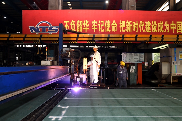 5月5日上午,公司在东区钢加车间举行船舶点火开工仪式,10#11400箱LNG双燃料动力集装箱船船体结构件开始预制。