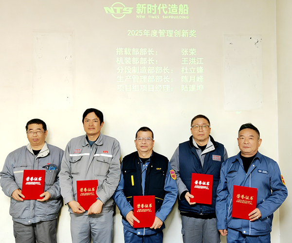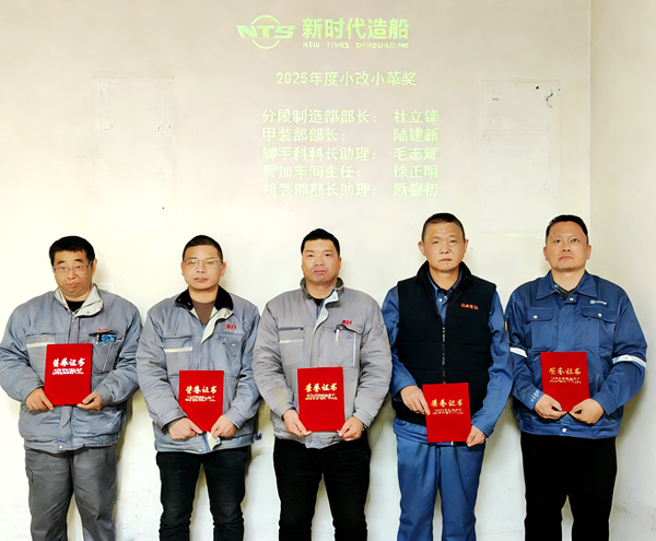 此次评选立足岗位实绩,突出实效导向。其中,管理创新奖授予在生产组织、流程协同及项目管理中实现突破的优秀管理者,张荣、王洪江、杜立锋、陈月峰、陆建坤因在生产调度优化、跨部门协同升级等方面的突出成果获此荣誉;小改小革奖重点表彰生产一线立足岗位破解难题、改进工艺的技术骨干。杜立锋、陆建新、毛志辉、徐正明、顾鋆初凭借工装改良、流程简化及安全提升等务实创新举措获奖;降本增效奖则聚焦在物资管控、成本优化及工艺降本方面创造显著效益的人员,叶震寰、侯旭红、吴红通过采购策略优化、废旧物资复用及建造工艺改进等实践,为公司实现成本节约与效率提升作出积极贡献。
