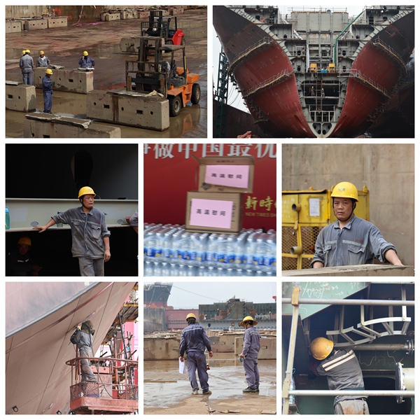 盛夏,热浪压迫着大地,空气中弥漫着钢板被炙烤的特殊气味,一群群身着工作服的人们正冒着酷暑进行着海洋巨轮的建造工作。