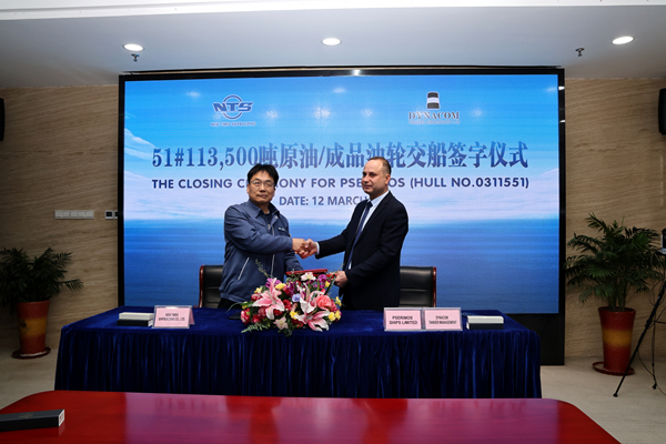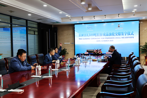 Subsequently, on March 12, 2026, the closing ceremony was held in the meeting room on 8th floor of New Times Office Building. The company's Executive Deputy General Manager Mr. Zhang Yuyong and the owner's representative Mr. Romeo Mustata were present. The vessel was smoothly and successfully delivered by us and accepted by the Owner.