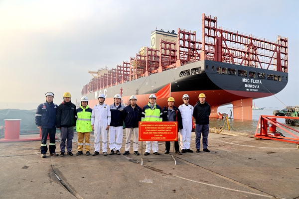 On March 5, 2025, the launching ceremony of 1# 11400 TEU Container Vessel bearing builder's hull no.0211401 has been carried out successfully by New Times Shipbuilding Co., Ltd.