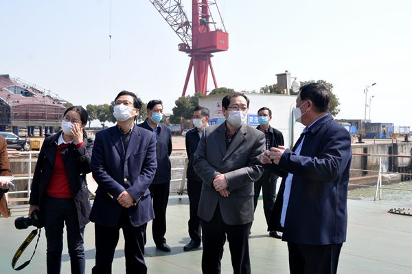 在公司的大型干船坞内,两艘20.8万吨散货轮正在加快建造。“你们建造的最大吨位的船是多大?”“一条船在坞内要造多久?”“这次疫情对你们的影响情况如何?”“企业目前有多少人复工了?”何聪频频发问,详细了解企业的发展及疫情后复工复产情况。当得知上周企业刚刚交付了一艘32.5万吨超大型矿砂船时,何聪连连表示称赞。董事长袁凯飞介绍,疫情发生以来,公司按照“两手抓、两不误”的要求,全面开展“抗疫情、促复工、保生产”活动,安全有序组织外来务工人员返岗,跑出了复工复产的“加速度”,努力将疫情的影响降至最低。