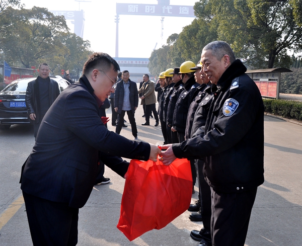 2月10日,农历大年初一上午9时许,公司领导袁凯飞、朱炳康、刘海金、周灿荣、张玉永、袁衡、杜江、郑忠、徐震宇、刘锋一行先后来到西区北门、西区食堂、新区码头2#引桥、新区空压机房、新区中门,看望、慰问春节假日期间依然在寒冬中坚守岗位、默默工作的后勤保卫工作人员;项目组、电装部、机装部、设备部等部门的值班人员,祝福大家身体健康、阖家幸福、万事如意,鼓励大家以饱满的热情、战斗的姿态为各项工作的全面完成做出新的贡献。