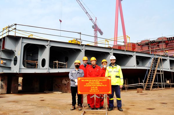 上午8:58,挪威船东Frontline公司现场经理Raman按下等离子切割机按钮,40#115000吨油船率先点火开工,该船总长249.9米,型宽44米,型深21.5米,设计吃水13.6米,结构吃水15.2米,载重115000吨,入LR船级社。挪威船东Frontline公司共订制2艘115000吨油船,首制船己于1月18日开工建造。