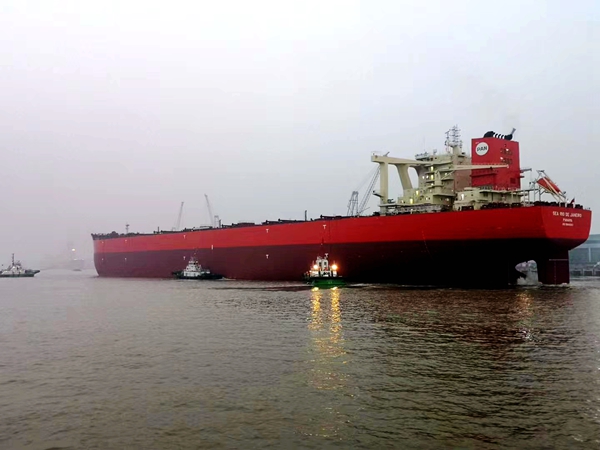 6月11日清晨5点,公司建造的3#325000吨超大型矿砂船“新时代初心拾号”驶离企业舾装码头,开赴浙江花鸟山海域开展试航调试工作。