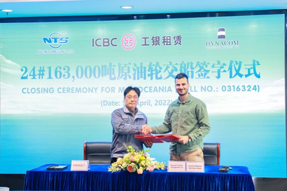 4月18日上午,公司举行船舶签字交付仪式,名为“OCEANIA”的24#163000吨原油船成功交付希腊船东达能孔公司运营。总经理刘海金、常务副总经理张玉永与希腊船东达能孔公司现场经理Michail Papadopoulos等嘉宾一起出席签字活动。此次交付的是为希腊船东达能孔公司建造的第40艘新船,也是向希腊船东交付的第100艘船舶。