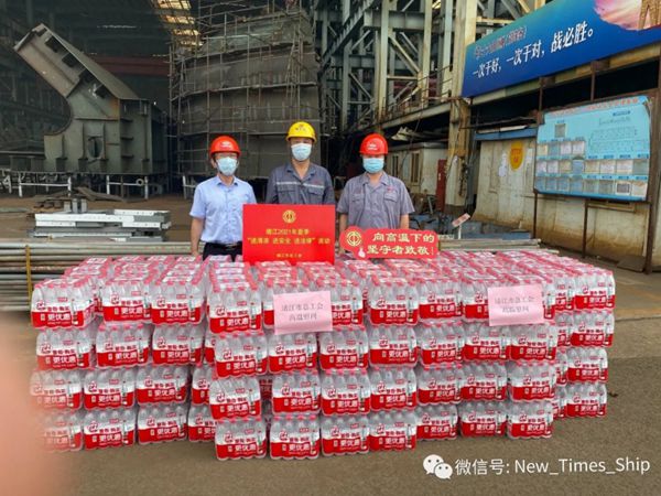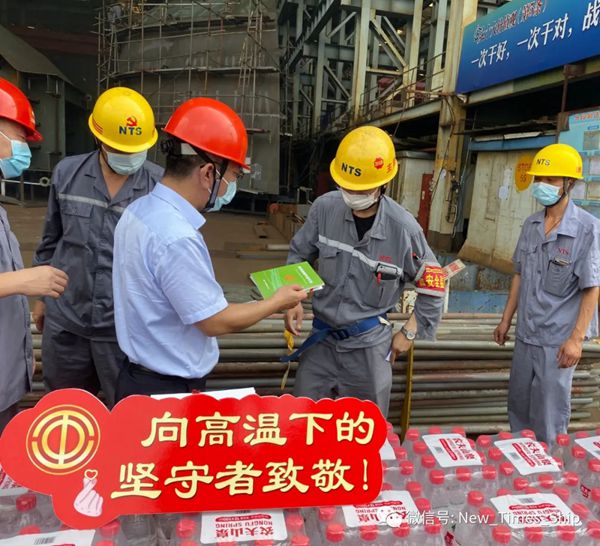 8月2日上午,市总工会副主席张连斌在公司工会主席杜江的陪同下,为冒着酷暑辛勤工作的前道生产部门员工们送上毛巾、肥皂、纯净水等防暑降温用品,并向企业职工宣传法律法规,增强职工的法律意识。
