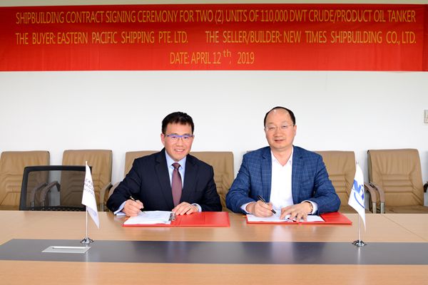 近日,公司与新加坡船东Eastern Pacific Shipping Pte. Ltd.签订的两艘111000吨成品油轮正式生效。公司CEO刘海金及公司执行董事袁衡与船东公司代表GAK YONG TAY先生出席签字仪式。该型船总长249.9米,两柱间长245.2米,型宽44米,型深21.3米,设计吃水13.5米,结构吃水:15米,货舱舱容(包括污油舱和残留舱)128900 cbm,载重吨110200MT,该系列船将安装我们企业自主生产的蓝洋洗涤塔,满足冰区加强1级规范要求。