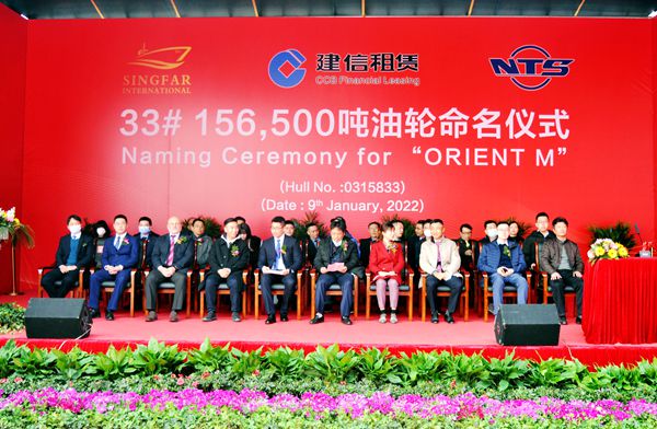9日下午1:30,公司在东区码头隆重举行船舶命名仪式,33#156500吨油船被圣母钮文珏女士成功命名为“ORIENT M”号。主持命名仪式时张玉永表示:取得今天的丰硕成果离不开现场船东代表们精心工作,也离不开英国劳氏船级社现场验船师们专业检验的技术支持,请接受我们最诚挚的感谢和衷心地祝福。