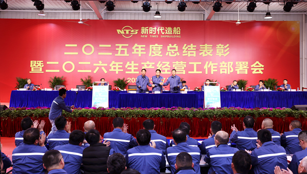 大会在嘹亮的厂歌、口号声中拉开帷幕,常务副总经理张玉永主持,他指出,今天隆重举行“二〇二五年度总结表彰暨二〇二六年生产经营工作部署会”,目的是回首奋进的2025年,致敬锐意进取的先锋楷模;展望激昂的2026年,吹响奋勇前行的战斗号角,凝心聚力、攻坚克难,全面贯彻落实董事会、党委、经营层的各项指示,促进公司各项管理全面提升,奋力谱写公司高质量发展新篇章,把新时代造船打造成世界一流的百年企业。