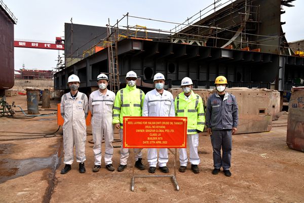 新加坡船东Singfar国际公司在我们公司订购了2艘156500吨油船,第1艘船舶已经完工交付,今天进坞合拢搭载的是第2艘船舶。新加坡船东Eastern Pacific Shipping Pte. Ltd.(EPS),订制了4艘110000吨油船和11艘210000吨散货船和7艘7000箱集装箱船,此次上台的是210000吨散货轮系列船中的第3艘船舶。希腊船东Seaworld公司订制了2艘156500吨油船,此次下水的是他们的首制船。156500吨油船吨总长274.3米,型宽48米,型深23.2米,设计吃水16米,结构吃水17.15米,载重156500吨。210000吨散货船总长299.95米,两柱间长294.75米,型宽50米,型深25.2米,设计吃水18.4米,结构吃水18.48米,货舱舱容(包括污油舱和残留舱)222000立方米,载重210000吨。