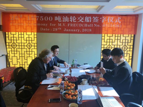 1月29日,公司举行签字交付仪式,26#158000吨油船交付船东。