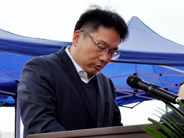 张玉永在致辞中说,今天隆重举行为国银金租建造的第9艘50000吨Ⅱ类化学品船命名交付仪式,同时也是我们为山东海运油轮公司建造的第17艘船。在这欢庆时刻,向远道而来的众位嘉宾表示最热烈地欢迎和最诚挚的感谢。今天命名的这艘船已经是TAURUS项目十艘船舶中的倒数第二艘。回顾项目之初,船舶市场正处于低谷,其艰辛可想而知,在国银金租、山东海运、DNV-CCS船级社等各方的通力合作下,我们成功交付了一系列船舶,大家辛勤劳动、不懈付出最终有了丰厚的回报。此时此刻,需要感谢的人还有很多,每一条船从设计开始,经历钢板切割、分段开工建造、上台、船舶下水到成功交付,自始至终,现场的船东监造、船级社、设计人员、车间的工人等等都付出了辛勤劳动,没有大家兢兢业业的埋头苦干和精诚合作,就没有今天的欢庆时刻,非常感谢!我们新时代造船始终坚守初心,坚持为船东为客户提供优质的服务,期望在未来的岁月里,山东海运和国银租赁能够一如既往地对我们予以支持和帮助,新时代造船一定为船东建造出更多质量一流、性能卓越的船舶。