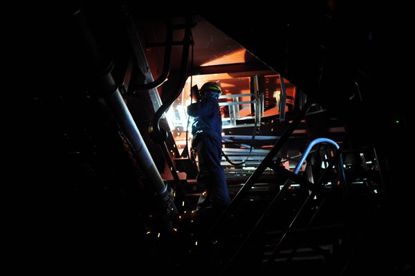 6月29日上午,泰州市应急管理局、靖江市应急管理局和靖江经济技术开发区安监局联合对公司安全生产工作进行检查,当检查至新区3#船坞0311127#船机舱发电机平台时,正在脚手架上进行反顶电舾件焊接作业的志信公司员工孟秋艳引起了检查组同志们的注意,虽然脚手架的高度仅有1.8米,但孟秋艳不仅劳动防护用品穿戴整齐规范,而且腰间的安全带也按高挂低用的标准进行了挂扣,于是检查组的同志们就让她暂时放下手中的作业,从脚手架上下来,首先核对了她的个人信息和焊工操作资质等,查验合格后,又进行了交流,了解到她从1996年就开始在公司工作,就继续询问她的家庭住址、离公司远不远,她当即回复:我家就在这里,公司就是我的家。孟秋艳工作时的情景本就让检查组的领导们感受到这是一位具有强烈安全意识和认真细致工作态度的好员工,而“公司就是我的家”这句质朴话语所流露出“以厂为家”的浓浓情感更是让他们感到欣慰和激动。