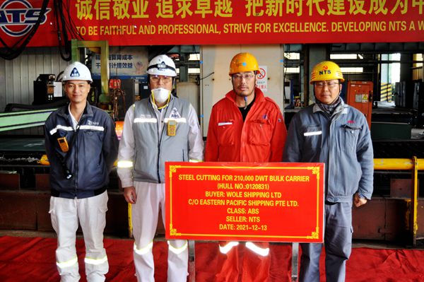 12月13日上午,公司在新区钢加车间三跨举行船舶点火开工仪式,31#、45#210000吨散货船船体结构件开始切割预制。生产管理部、质量管理部、营销部相关人员与新加坡船东Eastern Pacific Shipping Pte. Ltd.(EPS)现场经理倪杰等出席活动。