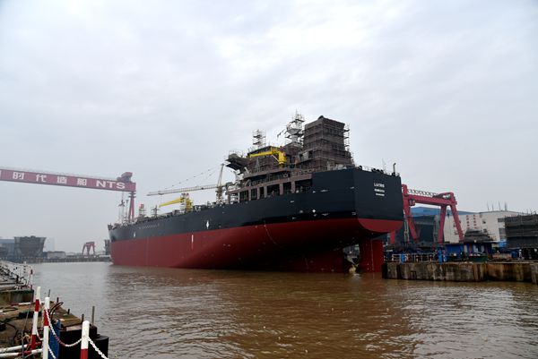 6:00,准备工作就绪,下水号令发出,海事拖轮缓缓发力,带缆员工逐步松开缆绳,4#50000吨化学品/油船缓慢向河下方向移动。在众人的瞩目和隆隆的鞭炮声中,4#50000吨化学品/油船驶出船坞,成功下水。