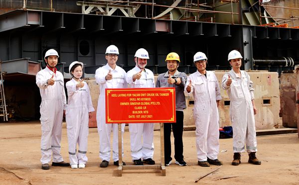 7月1日、2日,公司分别为新加坡船东SINGAFAR GLOBAL PTE LTD、希腊船东AVIN INTERNATIONAL LTD举行船舶进坞合拢仪式,33#、52#156500吨油船的船体分段开始吊装合拢。常务副总经理张玉永分别与新加坡船东SINGAFAR GLOBAL PTE LTD、希腊船东AVIN INTERNATIONAL LTD两公司代表及LR、ABS船级社等嘉宾共同见证。