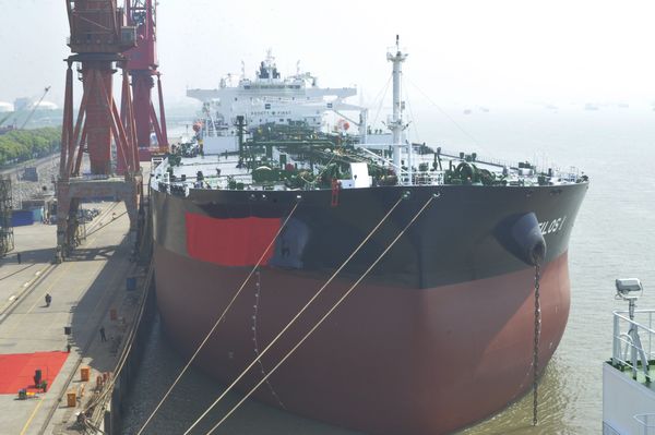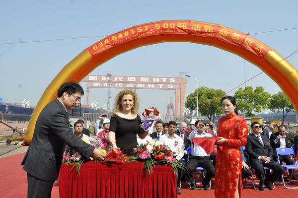 4月18日上午,63#64#158000吨油船命名仪式隆重举行,公司领导刘海金、张玉永、朱韩钢、丁柏英、杜江、郑忠、徐震宇与船东代表、船级社代表等嘉宾出席仪式,两船分别被命名为“SIKINOS I”、“TILOS I”号。