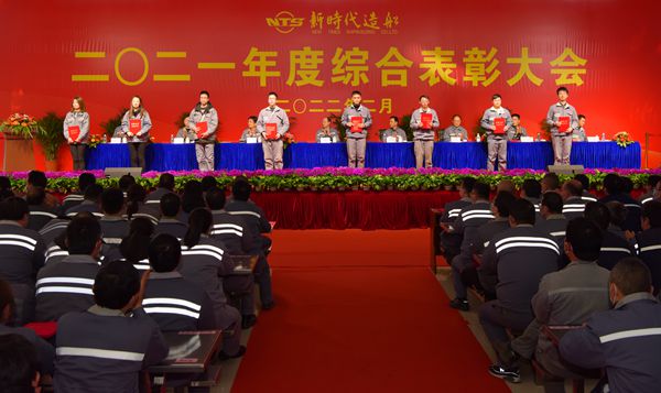 张玉永在主持时指出,隆重举行“二〇二一年度综合表彰大会”,目的是表彰先进、树立榜样,以先进榜样的力量,带动和促进企业各项管理提升,实现企业高质量发展,把新时代打造成世界一流的造船企业,实现新时代造船人的百年船梦。