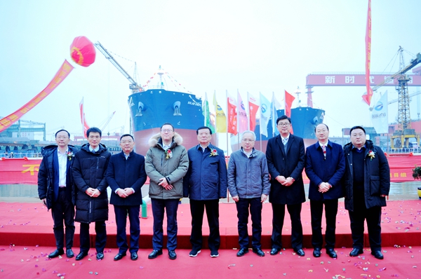 山东海运董事长于冰致辞:新时代造船是国际驰名油化品船舶建造企业,建造技术进入全球前列,今天首制两船下水是双方精诚合作、克服疫情影响取得的重大标志性成果。