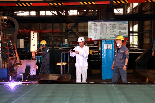 8月13日上午,公司在东区钢加车间举行船舶点火开工仪式,5#298000吨LNG双燃料动力油船船体结构件开始切割预制。