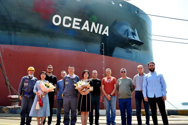 希腊船东达能孔公司共订制了五艘同类型163000吨原油船,今天命名的是该系列船中第三、四艘船舶。