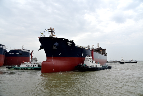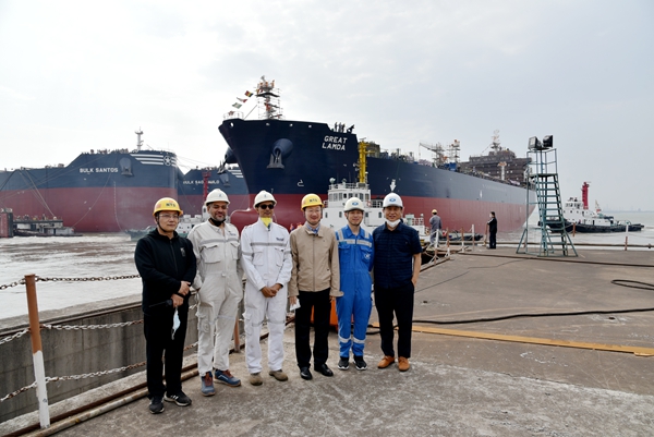 5月14日上午,在公司全体员工的共同拼搏下,生产全力加速,一日完成四大节点,分别是18#19#50000吨化学品/油船、67#158000吨油船等三艘船舶如期下水,6#208000吨散货船完成试航项目顺利返航。