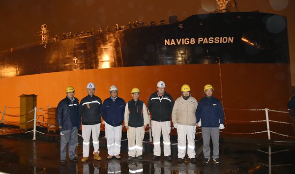 1月10日傍晚5时许,21#22#111000吨成品油船下水工作正式启动,在下水指挥人员、海事编队拖轮工作人员、带缆员工的通力协作下,两艘船舶相继缓缓驶出大坞,顺利实现下水大节点。公司领导张玉永、丁柏英、徐震宇与船东代表、船级社代表在现场共同见证了船舶下水全过程。