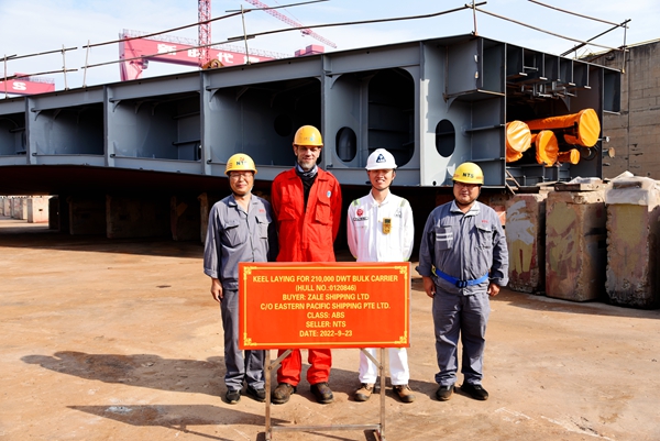 9月23日上午,公司在3#坞区域举行船舶进坞合拢仪式,35#46#210000吨双燃料动力散货船的船体结构件进坞合拢正式开始。生产管理部负责人陈月锋、营销部相关人员分别与船东喜马拉雅公司现场经理Davor Radic先生、船东Eastern Pacific Shipping Pte. Ltd.(EPS)公司代表等嘉宾出席活动。