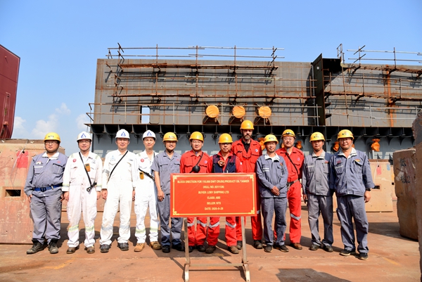 副总经理朱韩钢、总经理助理丁柏英分别与两船的船东代表共同出席活动,见证船舶开始合拢建造。