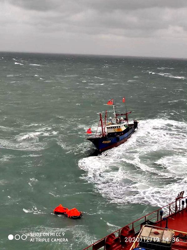在此过程中,24#208000吨散货船一边尝试救人,一边与海上搜救中心保持联络,并主动承担现场救援指挥任务,组织附近船只参与救援。附近海域的“浙象渔50279”“浙象渔40075”“浙象渔10076”等及商船“新威海”轮闻讯后迅速赶到现场,开展联合救援。在大家的共同配合下,经过近半个小时努力,终于将11名落水船员全部成功救起,生命体征稳定。