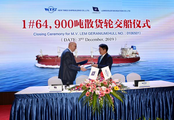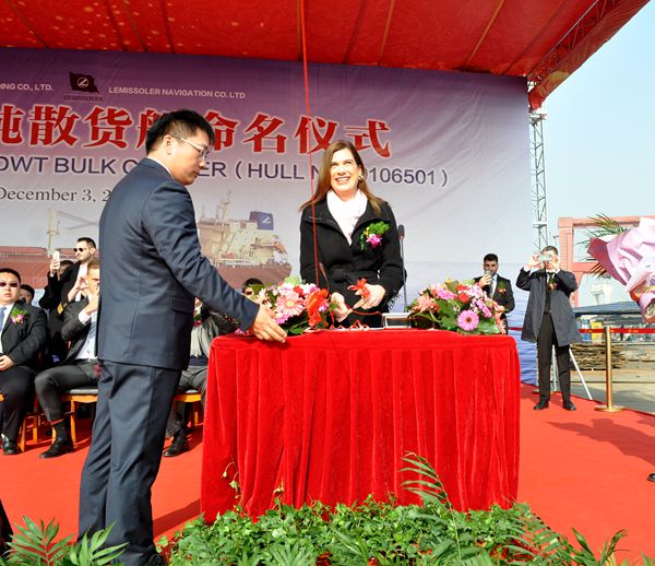 12月3日上午,公司举行隆重命名交船仪式,1#65000吨散货船正式交付船东。